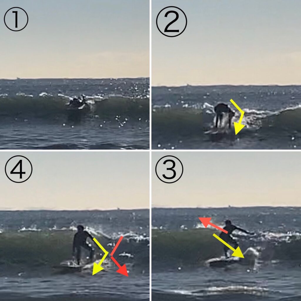 ライディングを動画で細かくチェックし、修正反復することでテイクオフ〜プルアウトの一連の中で、スピードやライン取りなど改善していってます。都度、振り返り修正がステップアップにつながっていってますね。
