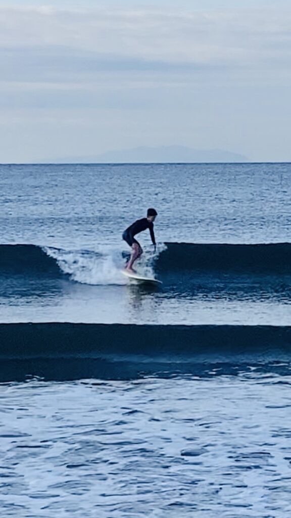 前回から前足荷重の意識改善のため事前に自主トレもしてきてもらったT様、その甲斐もあって何本もウネリからキャッチ&ロングライド出来てました。